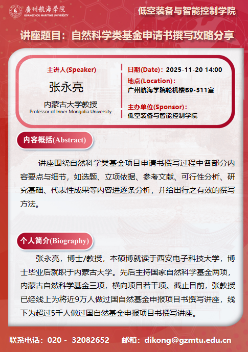 学术讲座预告:张永亮《自然科学类基金申请书撰写攻略分享》